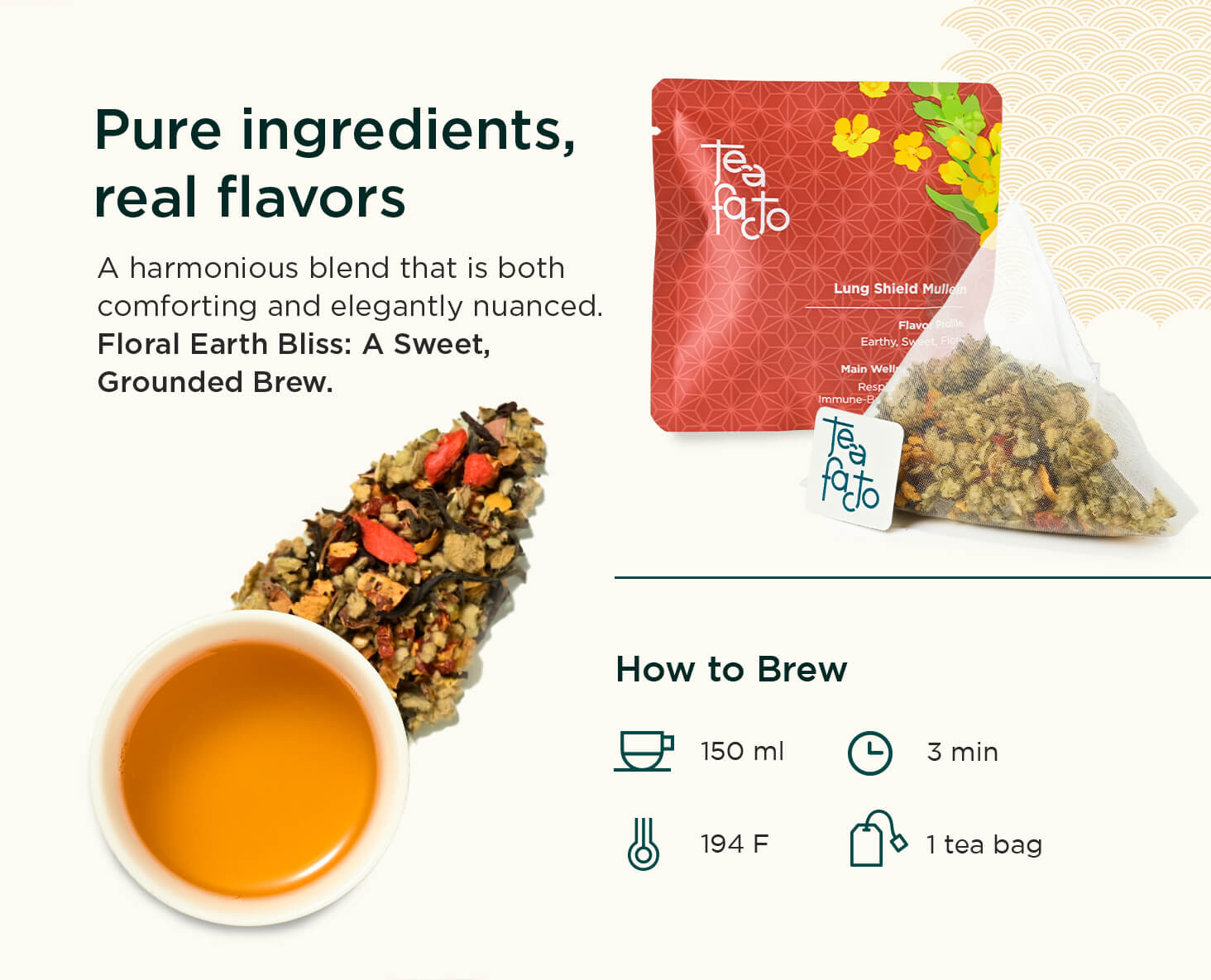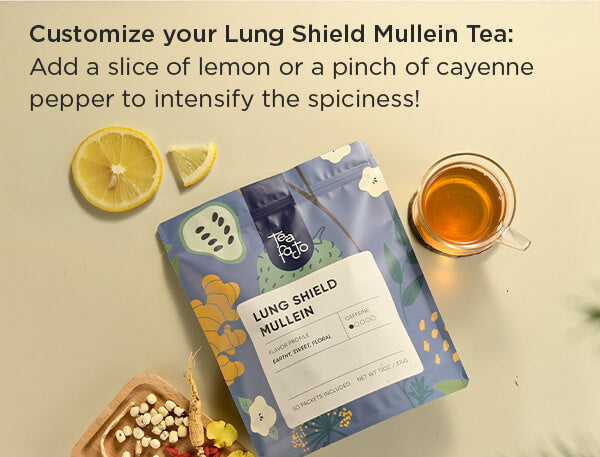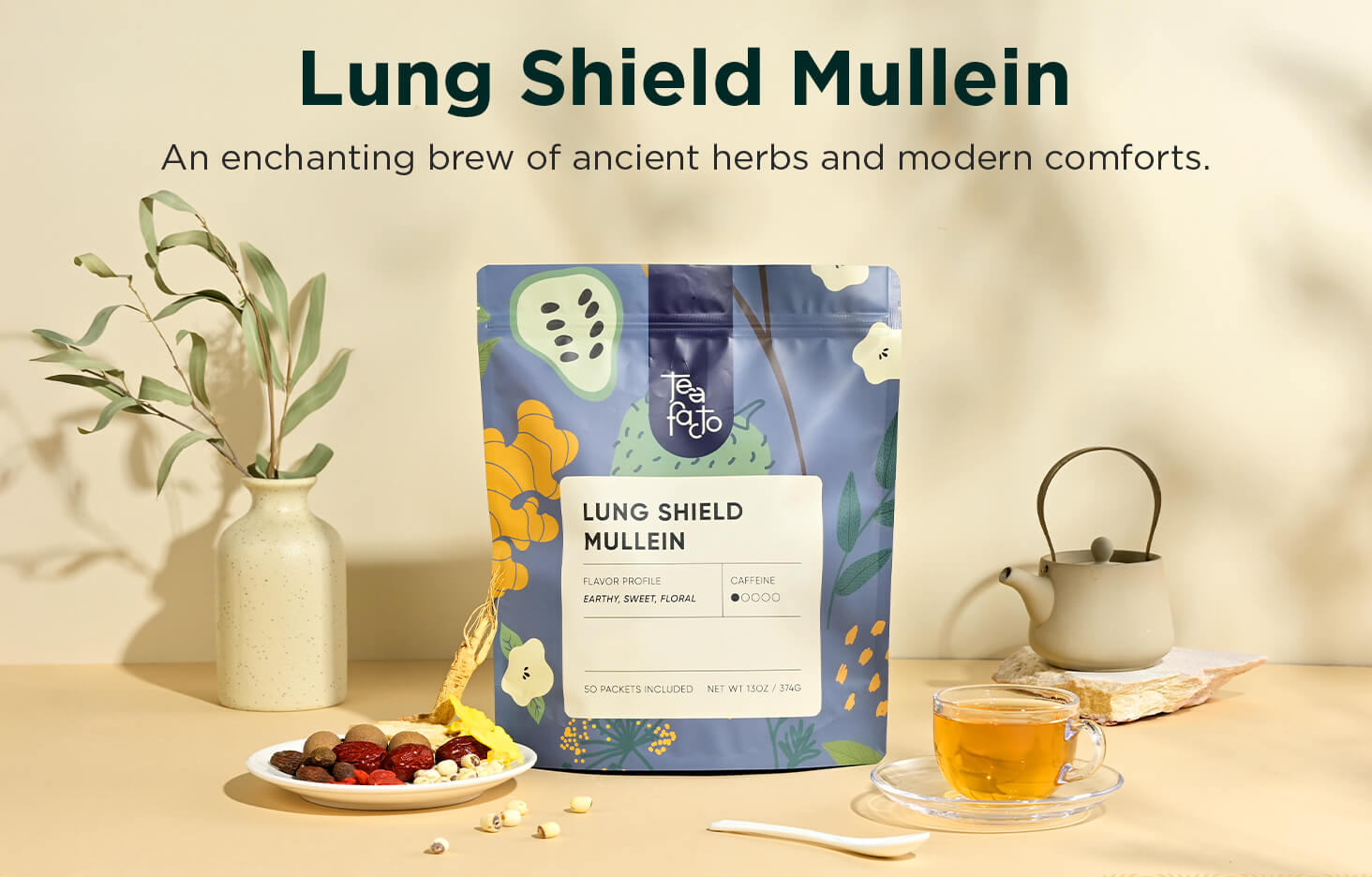 Breathe easier with our Lung Shield Mullein tea, a powerful herbal blend designed to support respiratory health. Carefully crafted from premium mullein leaves and eight other herbs packed with health benefits, this soothing brew offers natural protection for your lungs. Each cup delivers a gentle, healing embrace that helps clear airways and promote respiratory wellness. Whether you're seeking relief from seasonal challenges or simply want to nurture your respiratory system, Lung Shield provides a delicious and supportive solution for your well-being.